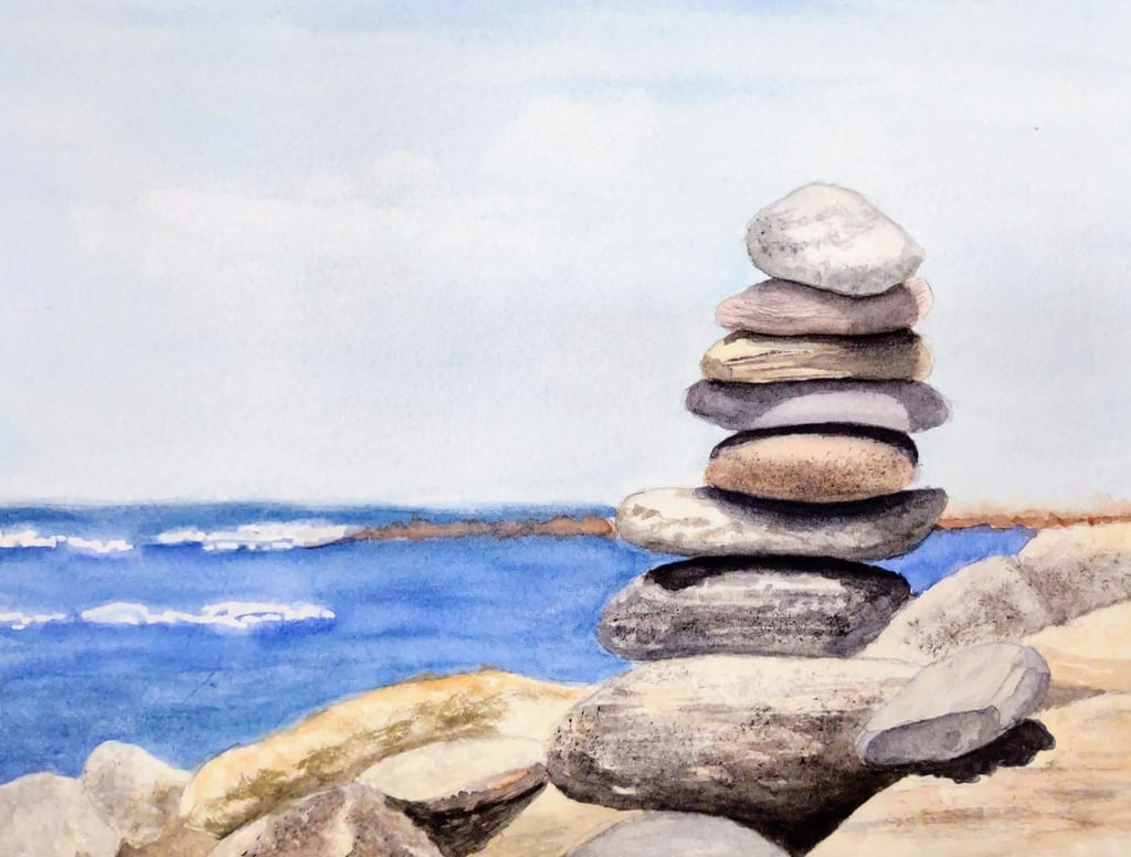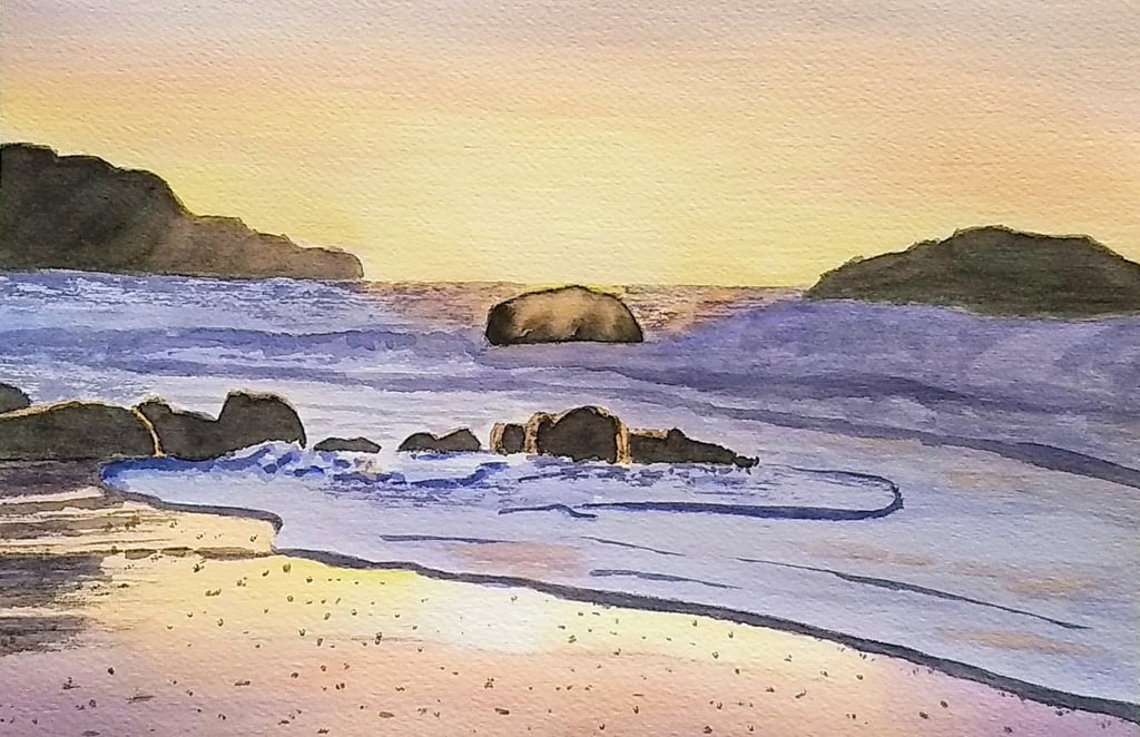 Coastal Sunset, watercolor on paper, 9" x 12"