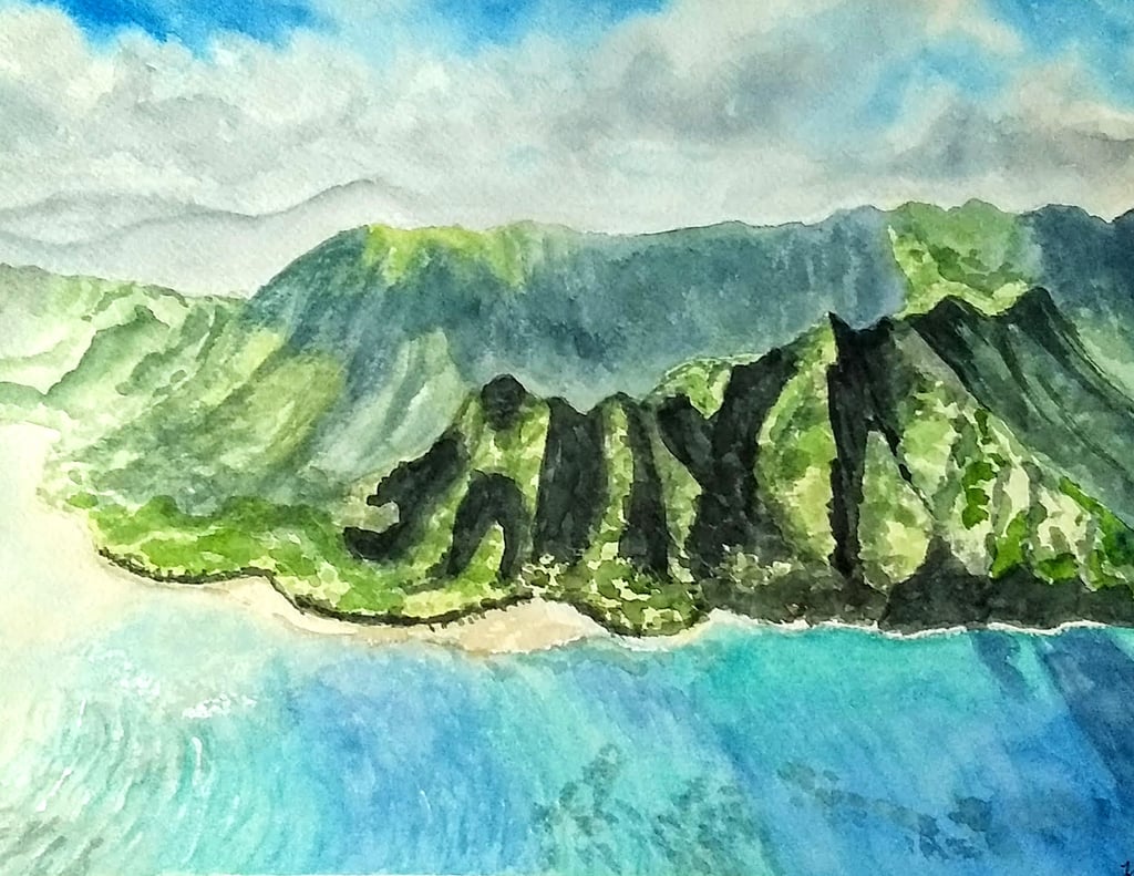 Na Pali Coast, Hawaii, watercolor on paper, 9" x 12"