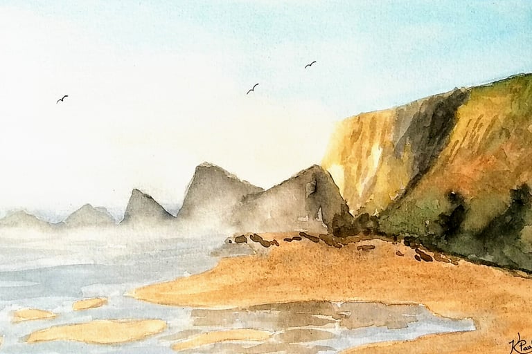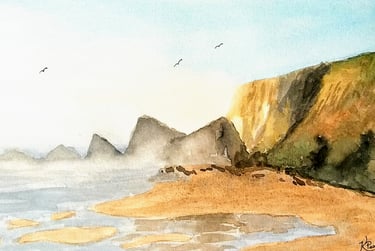 Coastal Sunrise, watercolor on paper, 9" x 12", SOLD