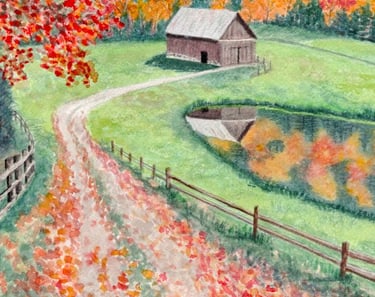 Autumn Path, watercolor on paper, 6" x 8", SOLD