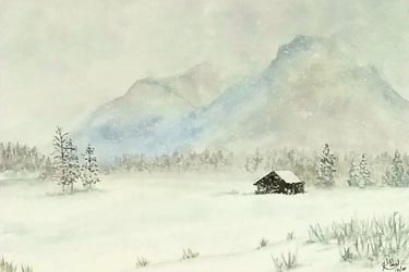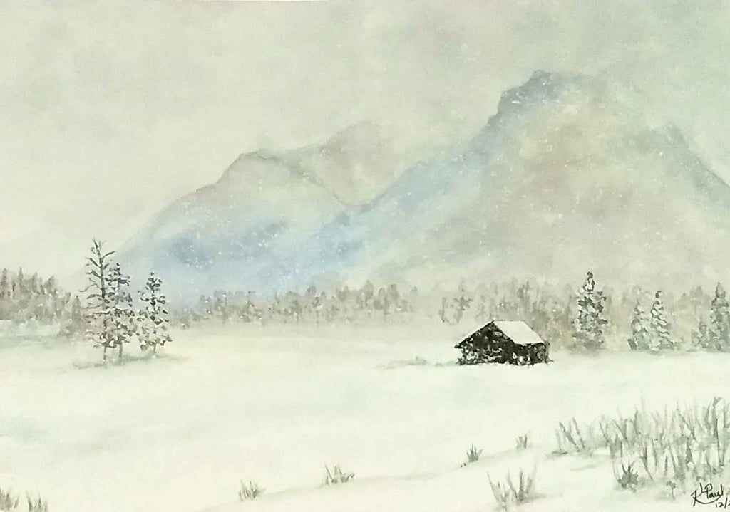 Mountain Snowstorm, watercolor on paper, 7 x 10