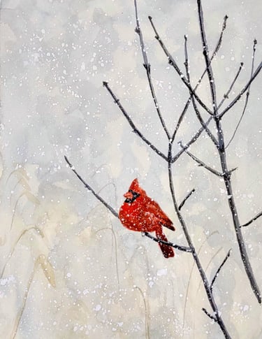 Christmas Cardinal, watercolor on paper, 8 x 6, SOLD